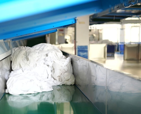 產(chǎn)品特點節(jié)能,智能,高效 1、無動力輸送系統(tǒng),利用重力使吊袋在自重作用下進(jìn)行滑行,既環(huán)保節(jié)能,又充分利用空間。采用PLC控制,自動稱重,分類暫存,智能進(jìn)料,生產(chǎn)效率高。 運行安全可靠 1、軌道采用不銹鋼板拉制成型,吊袋使用金屬滾輪,滾輪主體采用6mm壓制剛件,無需潤滑,堅固耐用。在軌道各個節(jié)點上設(shè)置傳感器組成多重保護(hù),確保運行安全可靠。 靈活可控,個性化設(shè)計 1、利用輸送軌道設(shè)計不同類別的暫存區(qū)域,便于布草進(jìn)行分類等待洗滌。輸送設(shè)計靈活可控,可對一條洗衣龍進(jìn)行輸送,也可同時對多條洗衣龍進(jìn)行輸送。